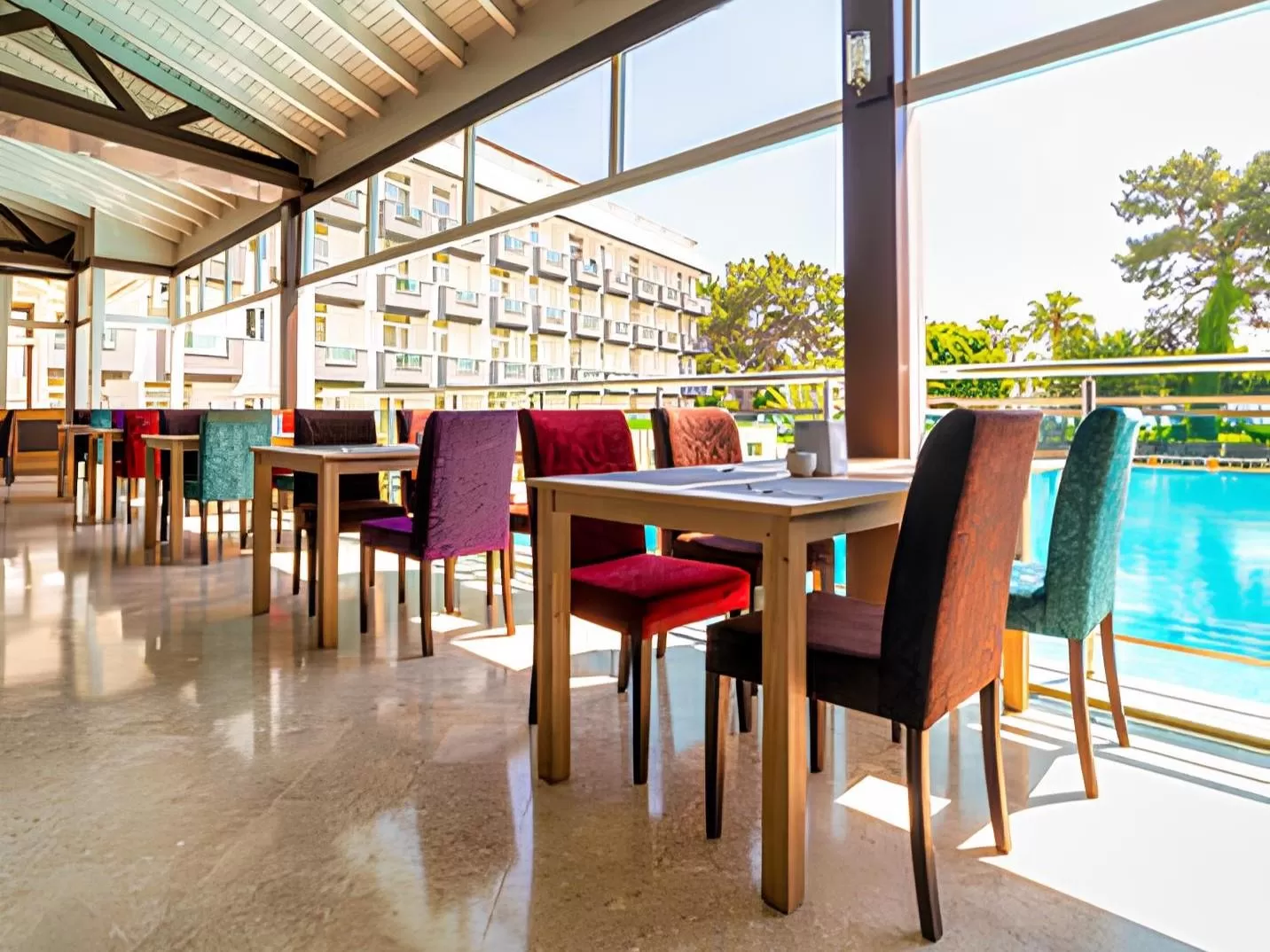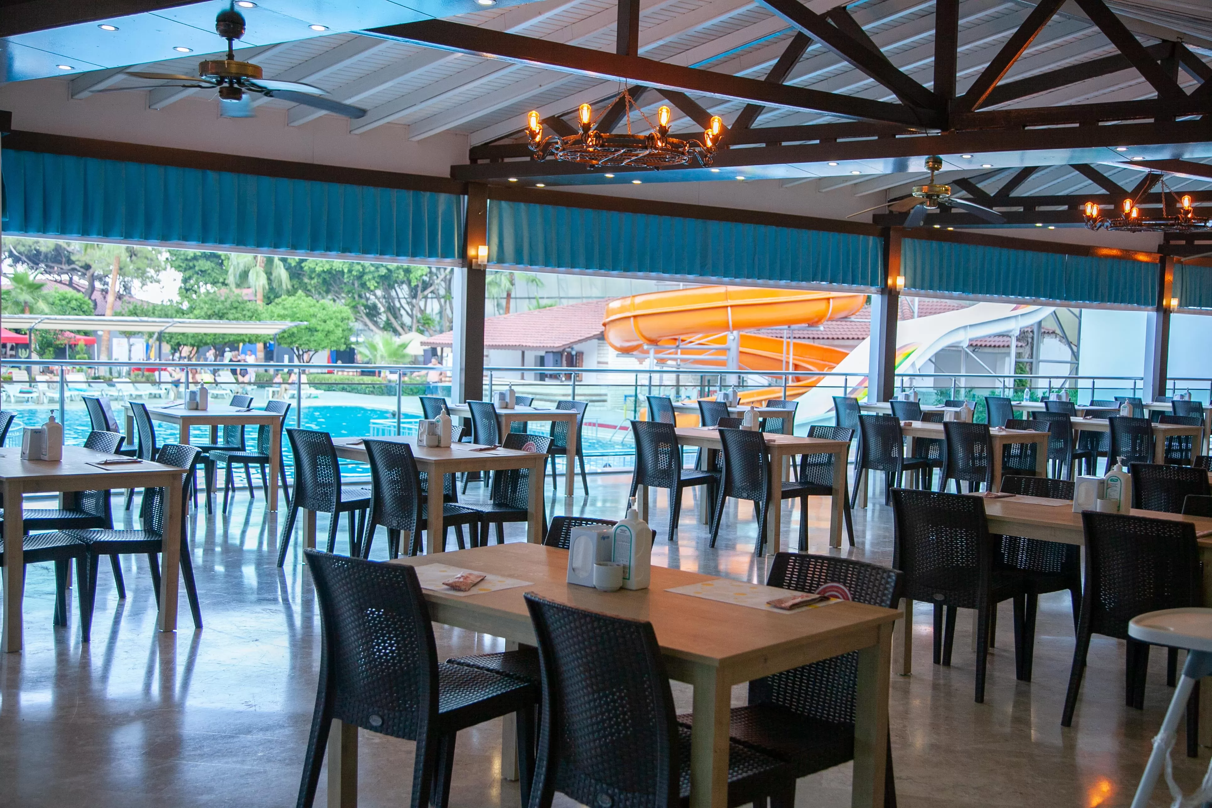 Для гостей отеля предлагаются концепции питания "Ultra All Inclusive" (UAI), что включает трехразовое питание по системе "шведский стол" в главном ресторане, местные алкогольные и безалкогольные напитки, некоторые импортные напитки, мороженое и закуски в течение дня. На территории отеля работают главный ресторан с блюдами турецкой и интернациональной кухни, снек-ресторан, рыбный ресторан а-ля карте, лобби-бар, диско-бар, бар у бассейна и бар на пляже.