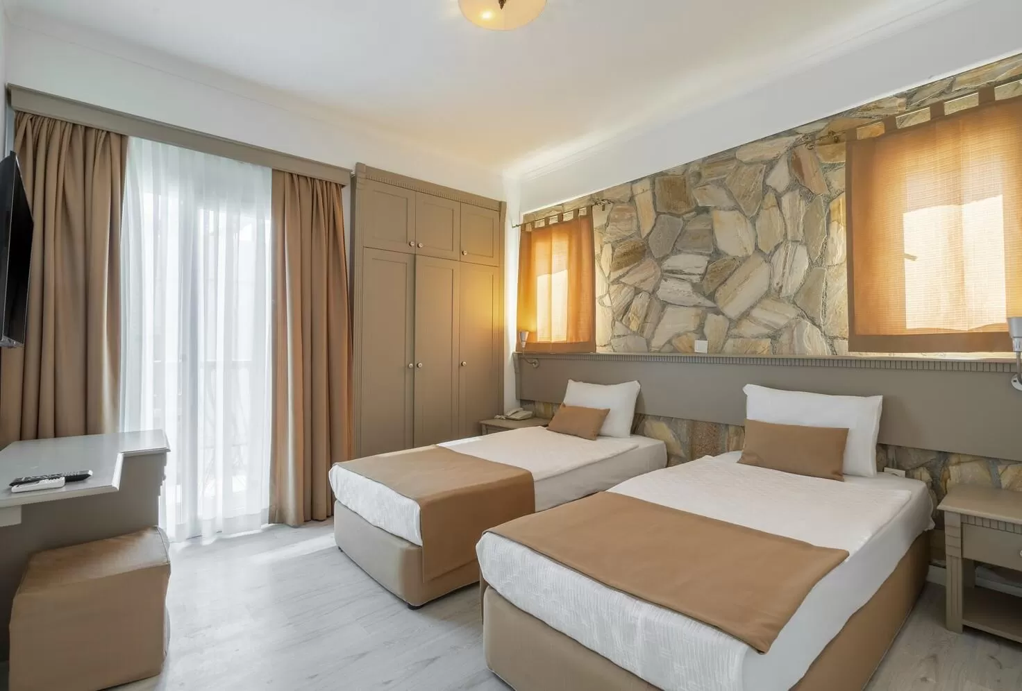 Отель предлагает гостям уютные номера с балконами или террасами, оснащенные Wi-Fi, телевизором, кондиционером, чайными принадлежностями, сейфом, мини-баром, телефоном, халатами и тапочками. В номерах также есть ванные комнаты с душем и феном, а также необходимые туалетные принадлежности. Для размещения доступны номера для людей с ограниченными возможностями и семейные номера.