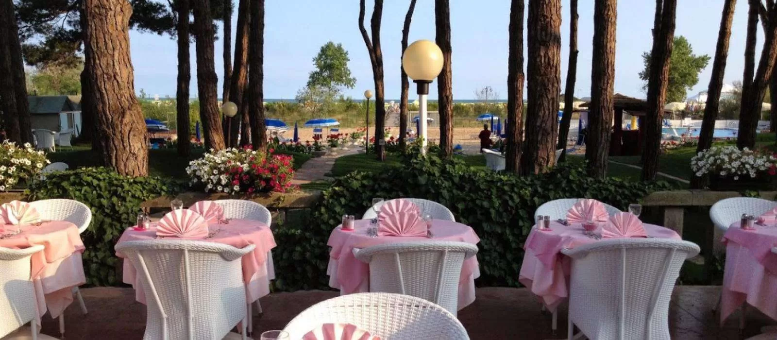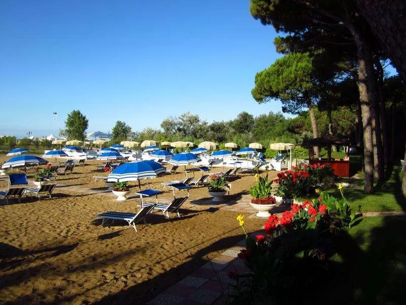 отель находится в зеленом и тихом районе Лидо - ди - Езоло. Четырехзвездочный отель окружен большим парком морских сосен.