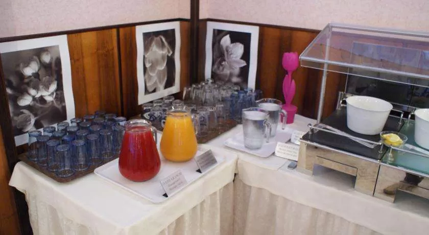Завтрак включает такие продукты, как ветчина, сыр и круассаны. Также вам будут предложены фруктовые соки и горячие напитки.