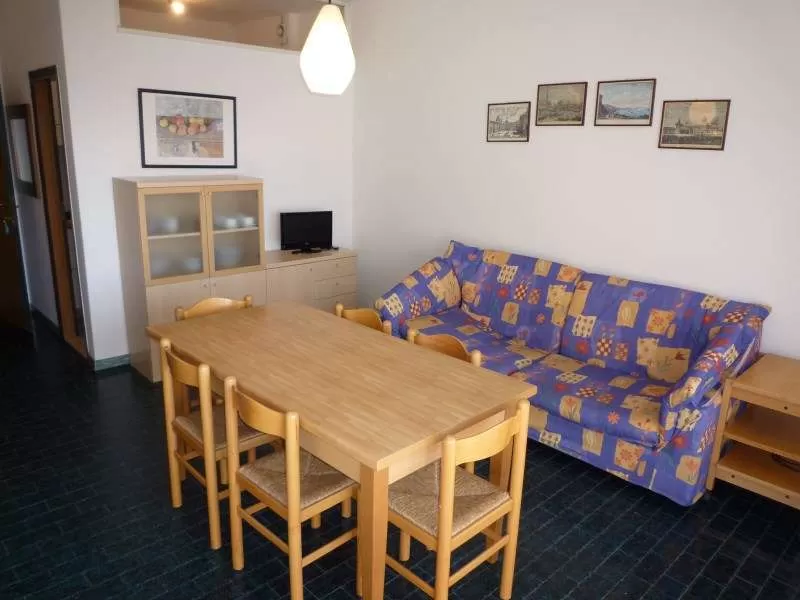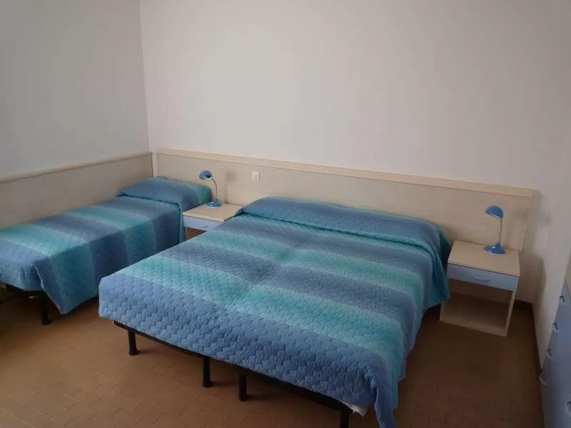 - тип TRILOCALE - квартира макс. для 6 человек имеет гостиную с кухней и диван-кроватью, спальню с двойной кроватью и односпальной кроватью и еще одну спальню с двумя односпальными кроватями или двухъярусными кроватями, ванную комнату с душевой кабиной и туалетом, балкон.