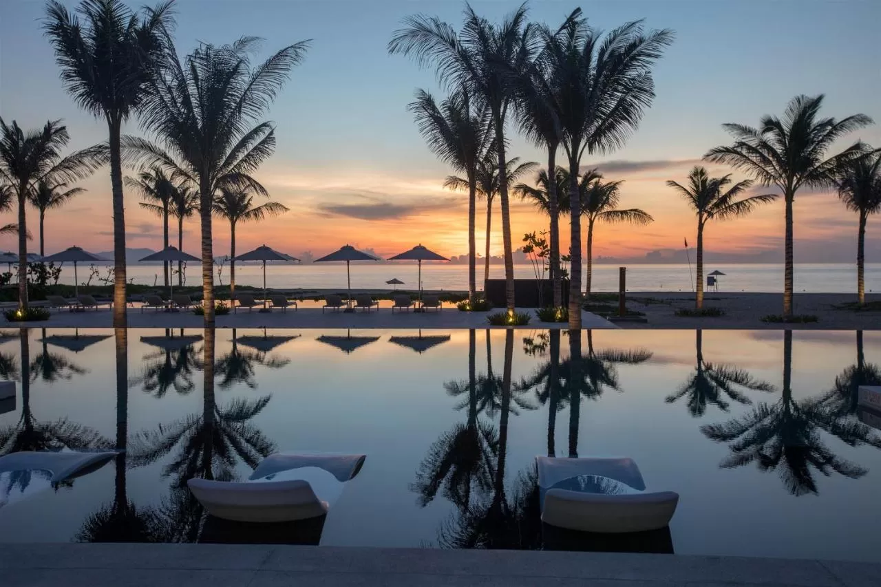 Отель расположен на первой линии пляжа Байдай — одного из самых живописных пляжей Вьетнама. Пляж частный, с белым песком, шезлонгами, зонтиками и обслуживанием. Отлично подходит для купания, прогулок, водных видов спорта и отдыха с детьми.