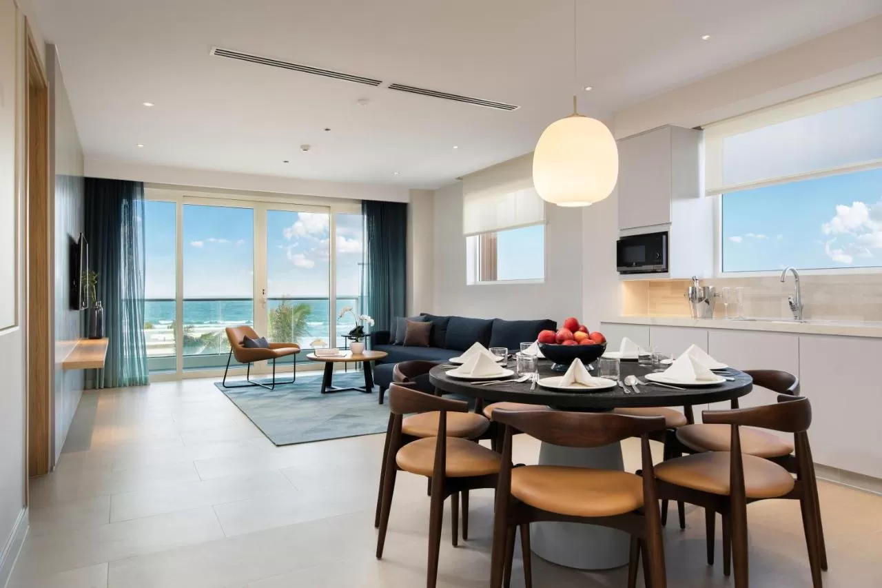 Номера и виллы оформлены в современном стиле с панорамными окнами и просторными террасами. Все категории оснащены кондиционером, телевизором, сейфом, кофемашиной, мини-кухней, рабочей зоной и ванной комнатой с биде.