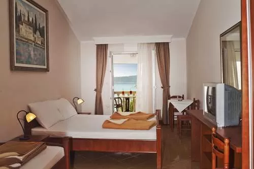 Номера просторные, кондиционированные, имеют ванную, холодильник, кабельный ТВ и террасу с великолепным видом на море.