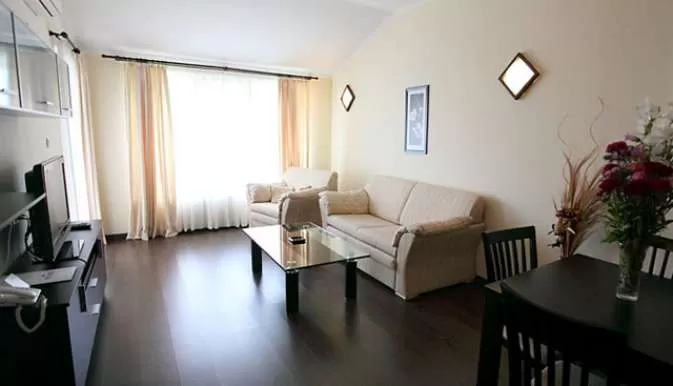 Односпальный апартамент –(54 / кв.м.)двуспальная кровать , диван-кровать , кондиционер , балкон , TV SAT , телефон , мини-бар , на полу в номере - паркет /плитка , кухонный блок , посуда и столовые приборы , электрочайник , электропечь , вытяжка , холодильник , сушилка для белья , межкомнатная дверь.