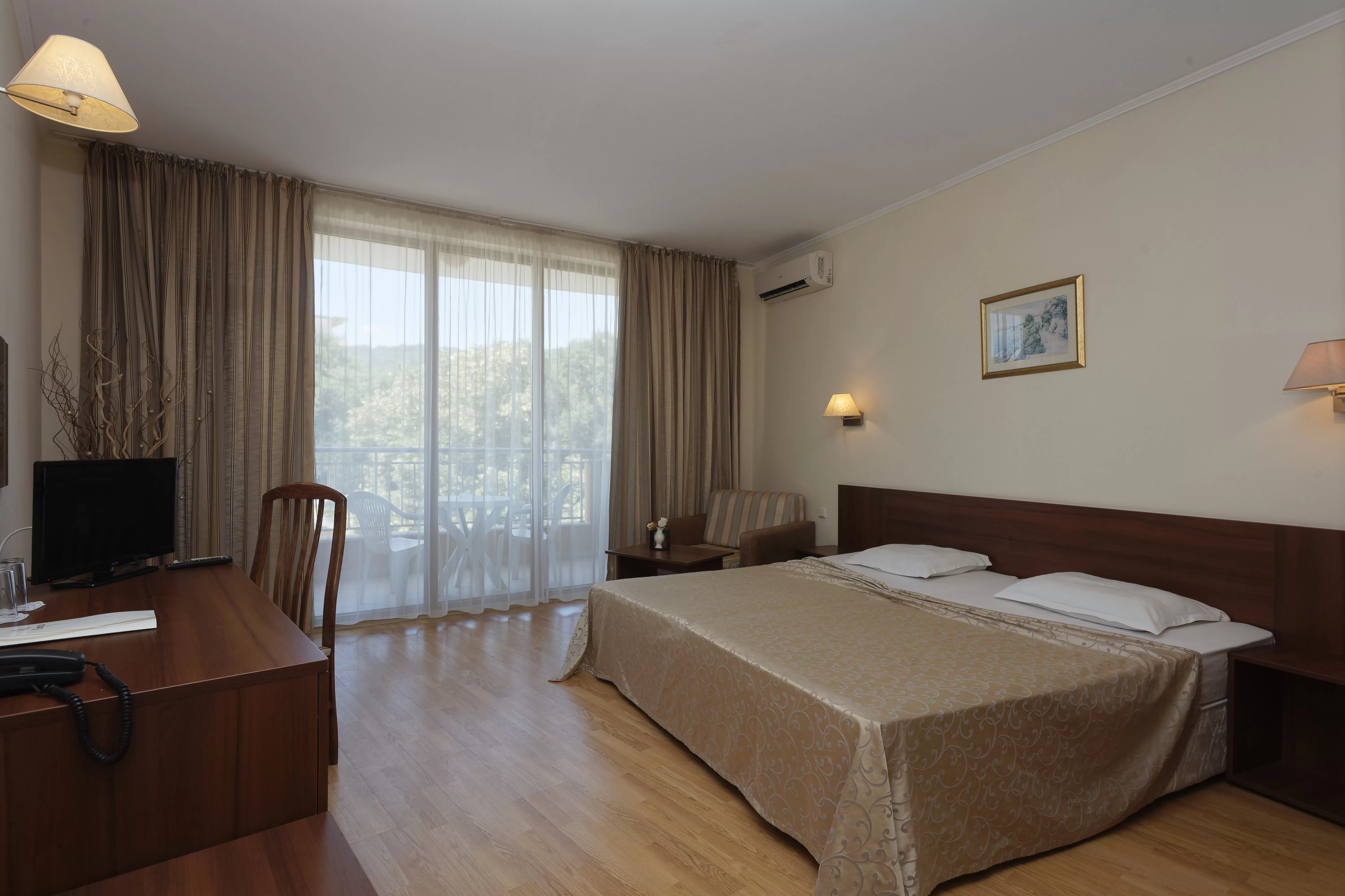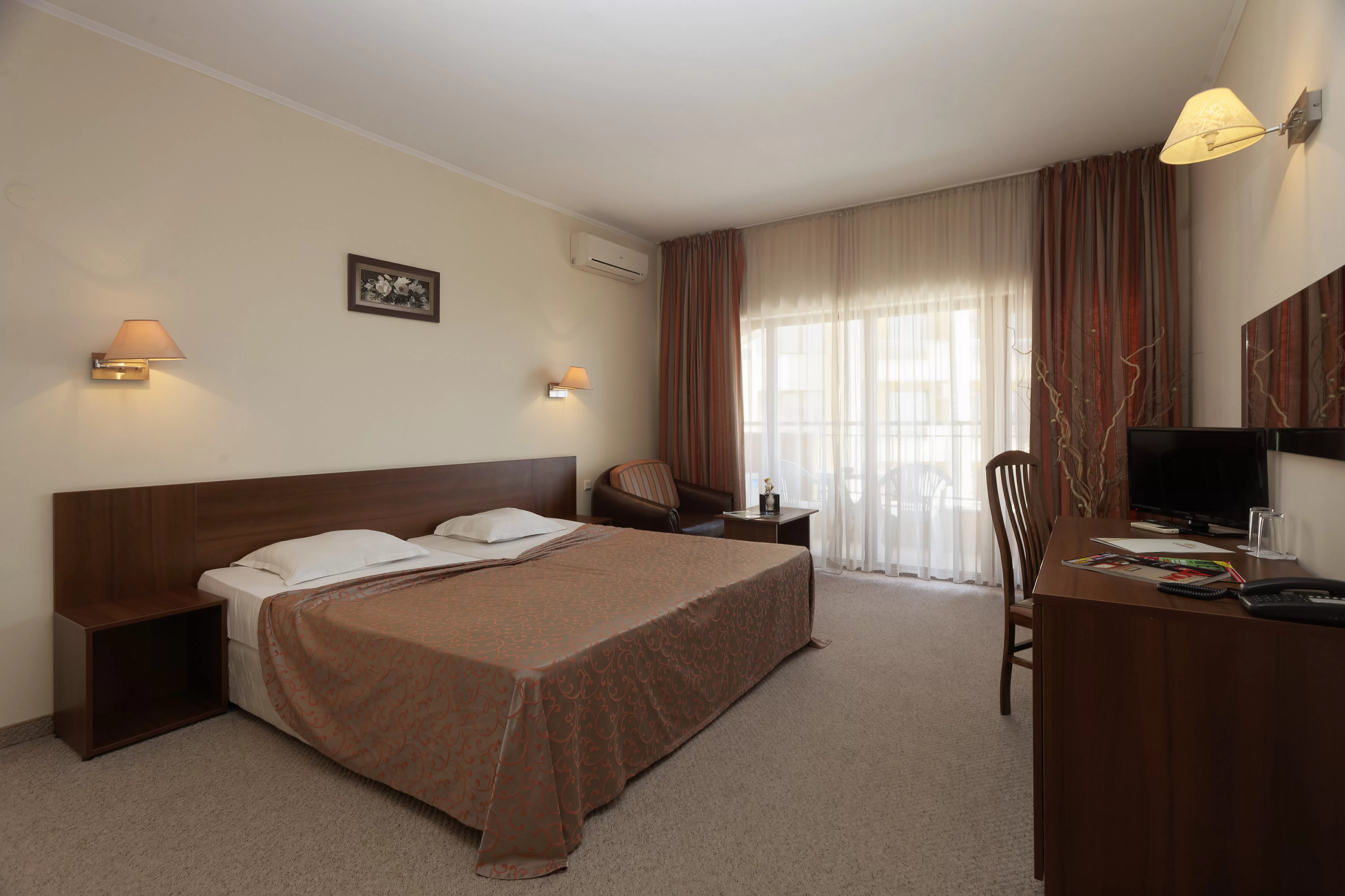 DOUBLE ROOM - PARK VIEW - min 2; max 2+1 или 3 взр: Приблизительная площадь 24 кв.м.; 2 регулярные кровати + раскладное кресло или раскладушка. Номера оснащены кондиционером, спутниковым телевидением, мини-баром (за дополнительную плату и по запросу), интернетом (бесплатно), электронной системой блокировки и балконом с видом на парк. В ванных комнатах есть ванна ( в некоторых - душ), фен, СОС-кнопка, полотенца и гостиничная косметика. Максимальное размещение 3 взрослых.