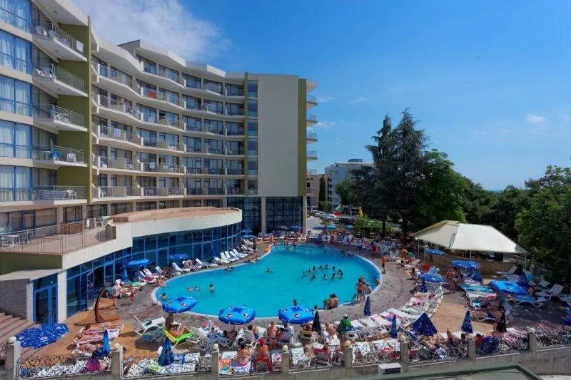 8 этажей • 2 лифта • 163 номера (вид на море или парк, макс. 2+2/3 чел., 32 m²) • 17 студий (макс. 3+2/4 чел., 40 m²).