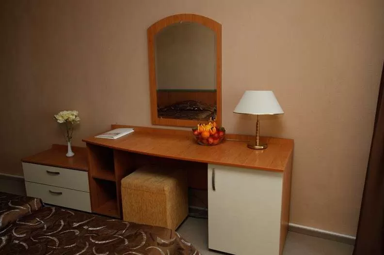 Доп. кровать (раскладушка) • центральный кондиционер • спутниковое TV • телефон • санузел с душем • балкон • пол – ковровое покрытие • уборка номера – ежедневно • смена постельного белья – 1 раз в неделю • смена полотенец – 2 раза в неделю.