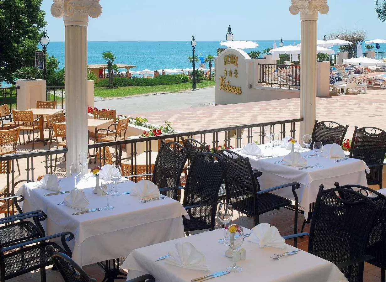 ULTRA ALL INCLUSIVE: шведский стол – завтрак с 07.30-10.00ч., обед с 12.30-14.30ч. и ужин с 18.30-21.00ч. С 10.00-12.00ч. – континентальный завтрак в снэк-баре. Холодные и горячие закуски, кофе/чай и печенье в снэк-баре с 14.00-17.00ч. (бутерброды, пицца, хот-дог). Мороженое в баре у бассейна с 10.30-12.00ч. и с 15.00-17.00ч. Ужин в тематическом ресторане по предварительному заказу. Все алкогольные и безалкогольные напитки болгарского и иностранного производства с 10.00-18.00ч. в баре у бассейна, с 10.00-17.00 ч. в баре на пляже и с 18.00-24.00ч. в салон-баре с дискотекой.