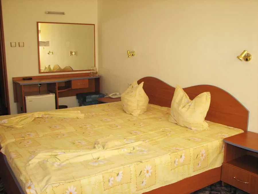 85 номеров с кондиционером и 3 апартамента, ресторан, просторный фойе, лобби-бар. Поблизости открытый бассейн с минеральной водой, спортивный центр, казино и бар-варьете "Шипка", дискотеки. На пляже - водные лыжи, водные мотоциклы, парашюты, яхт-клуб. К Вашим услугам сейф, информация, обмен валюты, аренда автомобилей паркинг, стоянка такси. В фойе спутниковое телевидение.($)
