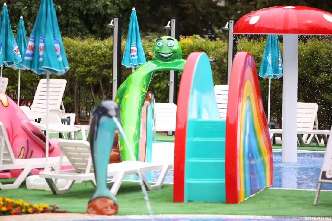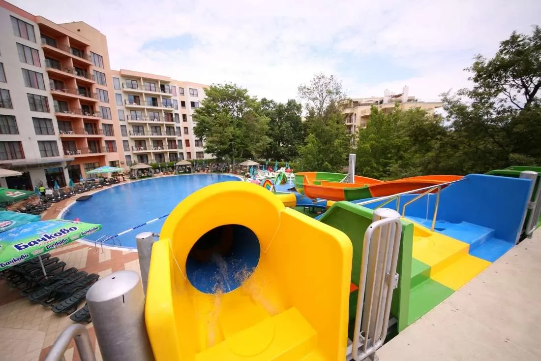Аквапарк (бассейн для взрослых + детский бассейн, наружные и внутренние водные горки, пиратский корабль, четыре фонтана и четыре горки в детском бассейне), детский бассейн, детский клуб, анимация, игровая площадки, мини-дискотека.