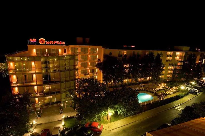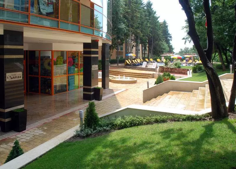 Отель Sunrise расположен в живописной центральной части курорта Золотые Пески, на расстоянии около 350 м от пляжа. До пляжа можно дойти пешком через парк или доехать на автобусе, который ходит каждый час с 9.30 до 16.00. До центра курорта Золотые пески 350 м.